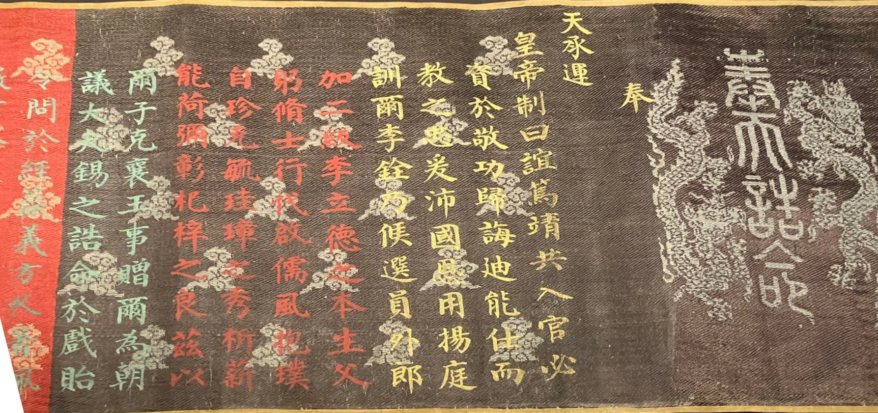 嘉庆皇帝的诏书。清朝的诏书是用满语和汉语两种文字起草的。这份诏书是1806年1月20日发的。题目是: 候选员外部加二级李立德之本生父母。是表彰贤德德官员李立德,授予他的去世的父母二等爵位。