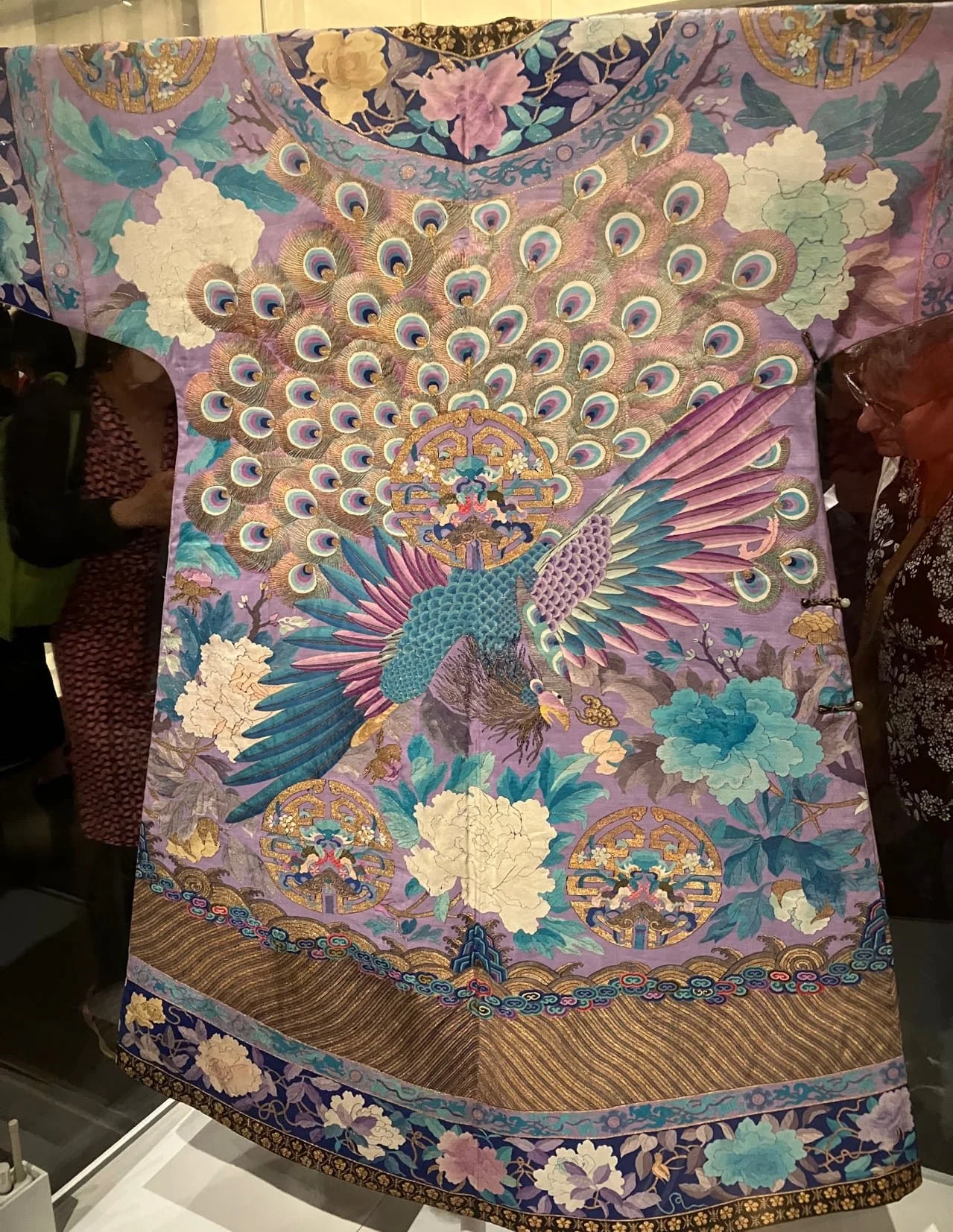 慈禧太后的凤袍。前后各刺绣有一只凤。这件文物是第一次展出。