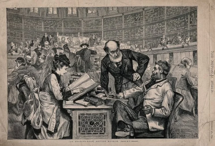 木刻:大英博物馆阅览室情形,1874年