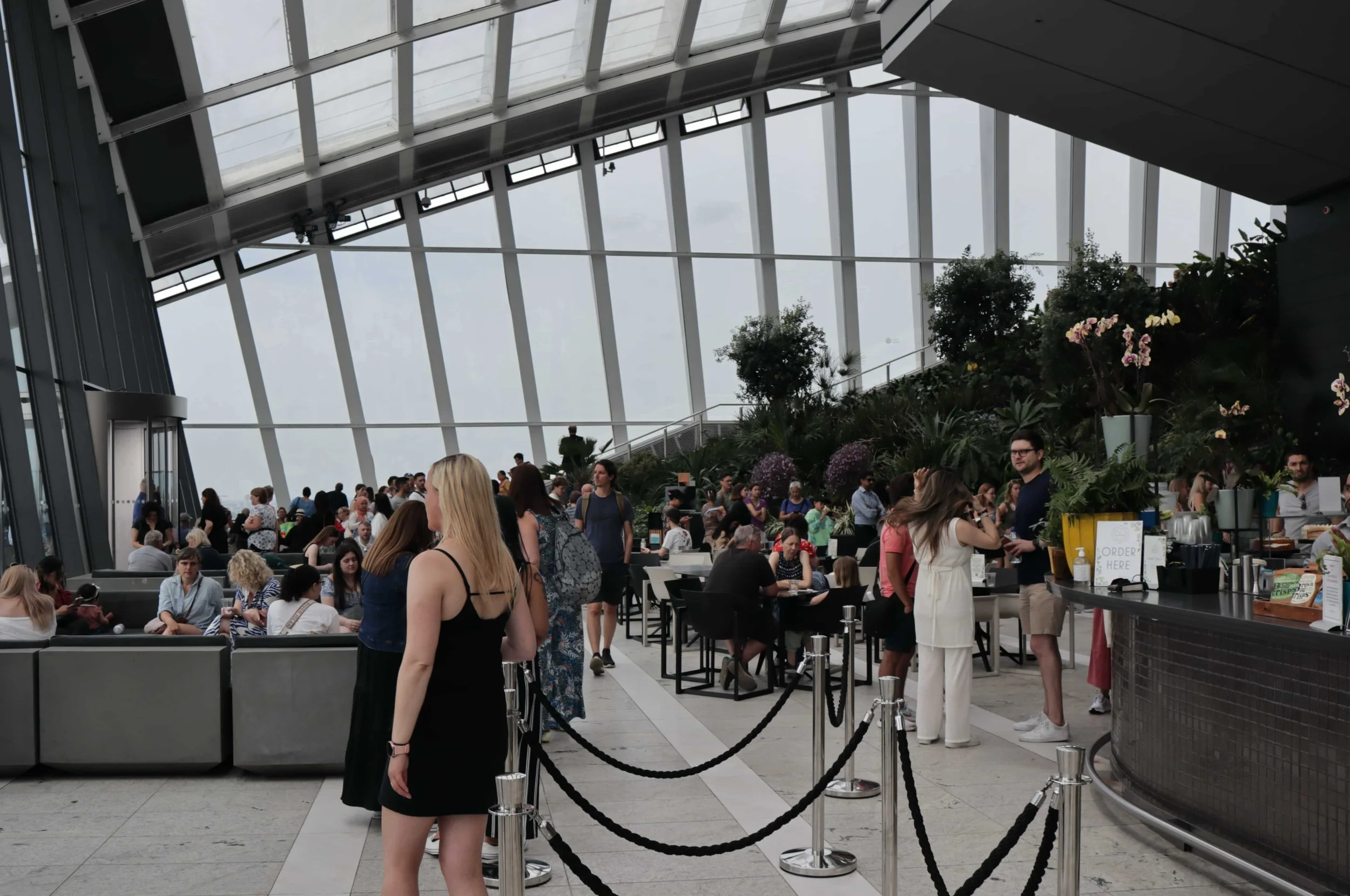 空中花园有酒吧(Sky Pod Bar 和 City Garden Bar)和餐馆,Darwin Brasserie (英式美食)和 Fenchurch Restaurant (高端餐饮)。