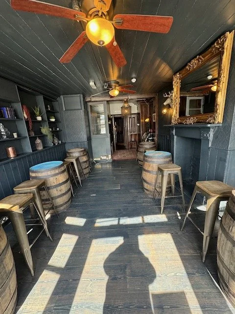 酒吧的前门并不宽。酒吧的里面也很陈旧。进门后是前酒吧间,吧台在酒吧间的里面。走过吧台,经过一个小门,进入到了后酒吧间,后酒吧间里摆放着4张小桌子和10几个椅子。